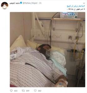 نشر ماجد النفيعي، رئيس مجلس إدارة النادي الأهلي السعودي، عبر حسابه الشخصي على موقع التواصل الاجتماعي "تويتر"، صورة للمستشار تركي آل شيخ، رئيس الهيئة العامة للرياضة بالمملكة العربية السعودية، وهو داخل إحدى المستشفيات.