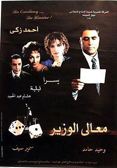 وفي العام 2002 شاهد المصريون فيلم "معالي الوزير" بطولة أحمد زكي ويسرا وعمر الحريري ولبلبة وهشام عبدالحميد، ويروي الفيلم قصة الوزير رأفت رستم الذي وقع عليه الاختيار ليكون وزيراً عن طريق الخطأ لتشابه اسمه مع اسم شخص آخر، وبقي الوزير في منصبه فترة كبيرة.