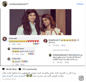 وعلق محمد أنور:”وده كان رد النجمة غادة عادل والنجمة كندة علوش الحقيقيين لما شافوا غادة عادل وكندة علوش اللي في مسرح مصر”.