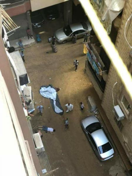وتابع الشهود، أنه فور سقوط المجنى عليه على الأرض تجمع حوله الأهالى على الفور محاولين إنقاذه، ولكنه كان قد لفظ أنفاسه الأخيرة، وفى تلك اللحظة فوجئوا بزوجته والتى تعمل طبيبة بيطرية تطل من شرفة منزلها وتقول: "أنت مت يا محمد يا حبيبى، أنا هاجى وراك علشان نروح الجنة"، وحاولت القفز من الشرفة فتدخل الأهالى على الفور وحاولوا إثناءها عن ذلك وطلبوا منها الدخول وعدم القفز، ولكنها لم تمتثل إليهم وقامت بإلقاء نفسها من الطابق السابع، فسقطت على سيارة "ميكروباص" كانت مركونة أسفل المنزل الذى شهد الواقعة، بعدها سقطت على الأرض.