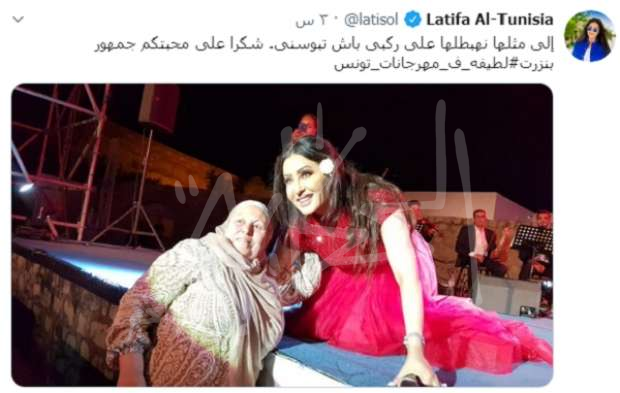 وكانت لطيفة أحيت حفلًا ضمن فعاليات مهرجان قرطاج الدولي بتونس، بحضور نخبة من الوزراء والمسؤولين التوانسة، أبرزهم وزير الثقافة وأحد ممثلي الرئاسة، وذلك بعد غيابها عن إقامة حفلات في تونس لعدة سنوات.