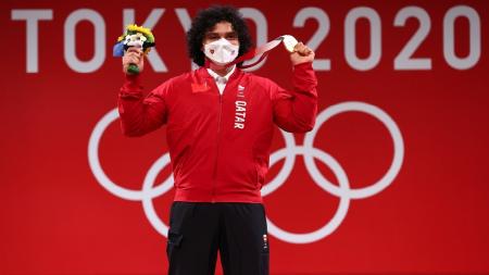 ومنح فارس حسونة، قطر الميدالية الذهبية الأولمبية الأولى في تاريخها، بفوزه في منافسات رفع الأثقال للرجال لوزن 96 كغم، ضمن فعاليات أولمبياد "طوكيو 2020".