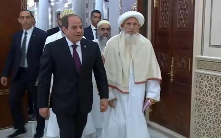 وقام الرئيس السيسي عقب وصوله بأداء صلاة "تحية المسجد"، وبثت صفحة المتحدث الرسمي لرئاسة الجمهورية فيلما قصيرا عن أعمال تطوير المسجد.